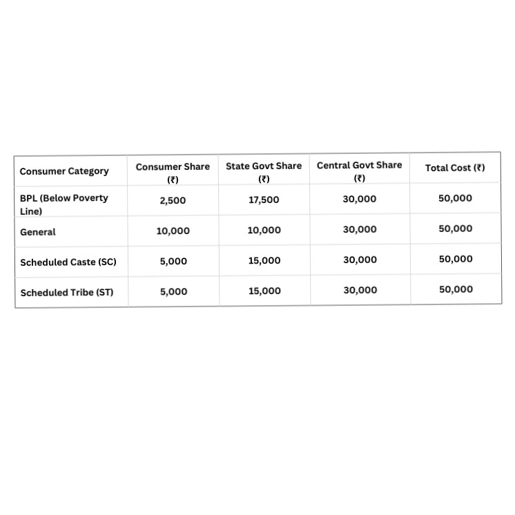 Assuming an estimated system cost of ₹50,000 per kW, the distribution is as follows refer attached image